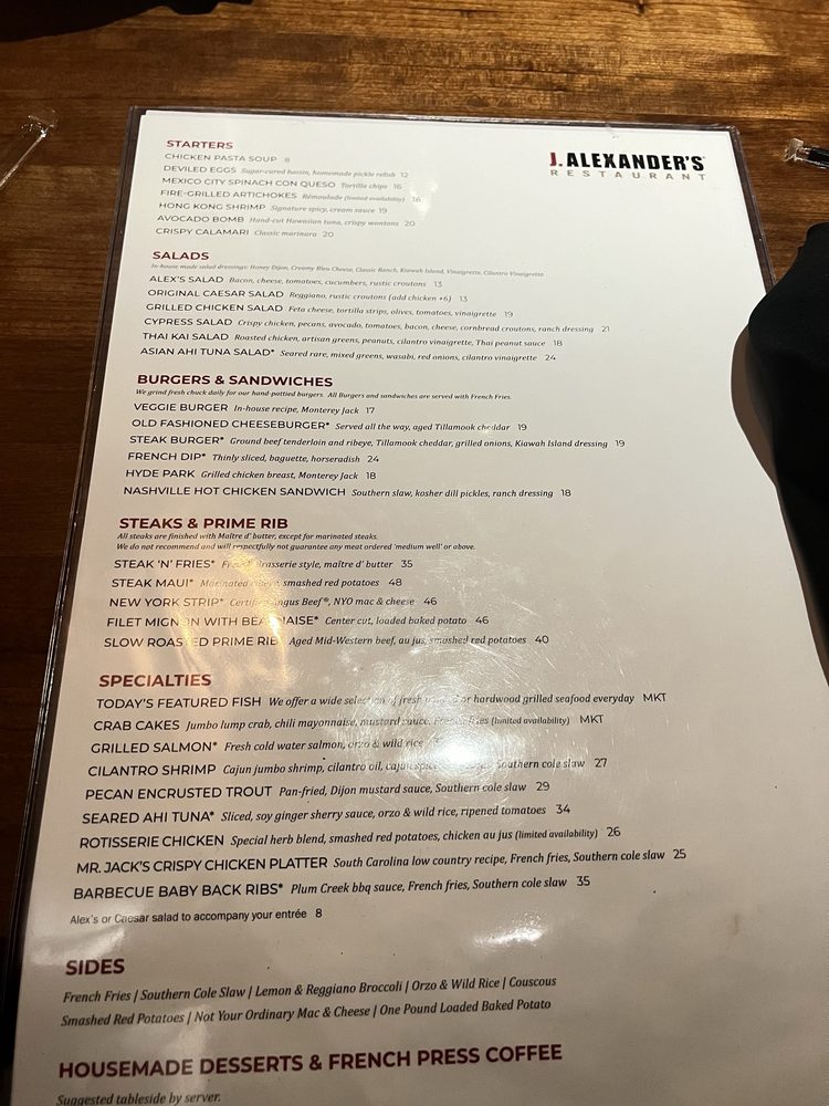 As the reviews suggest, every dish is prepared with care, and the service is exceptional. Whether gathering for a special occasion or a casual meal, J. Alexander's is sure to impress.
