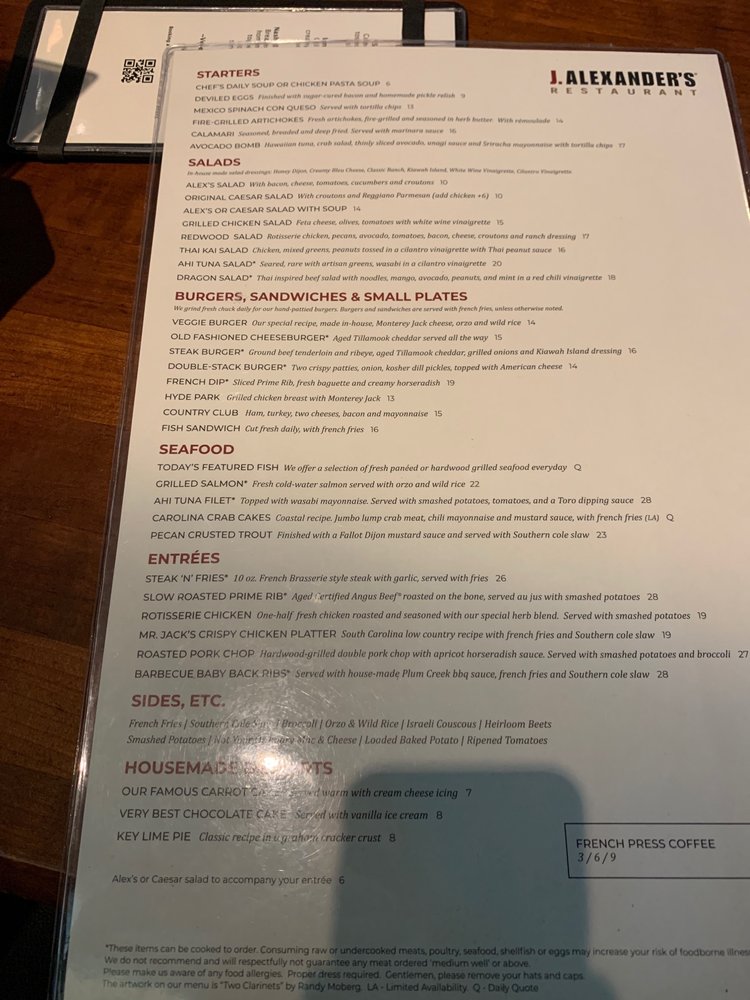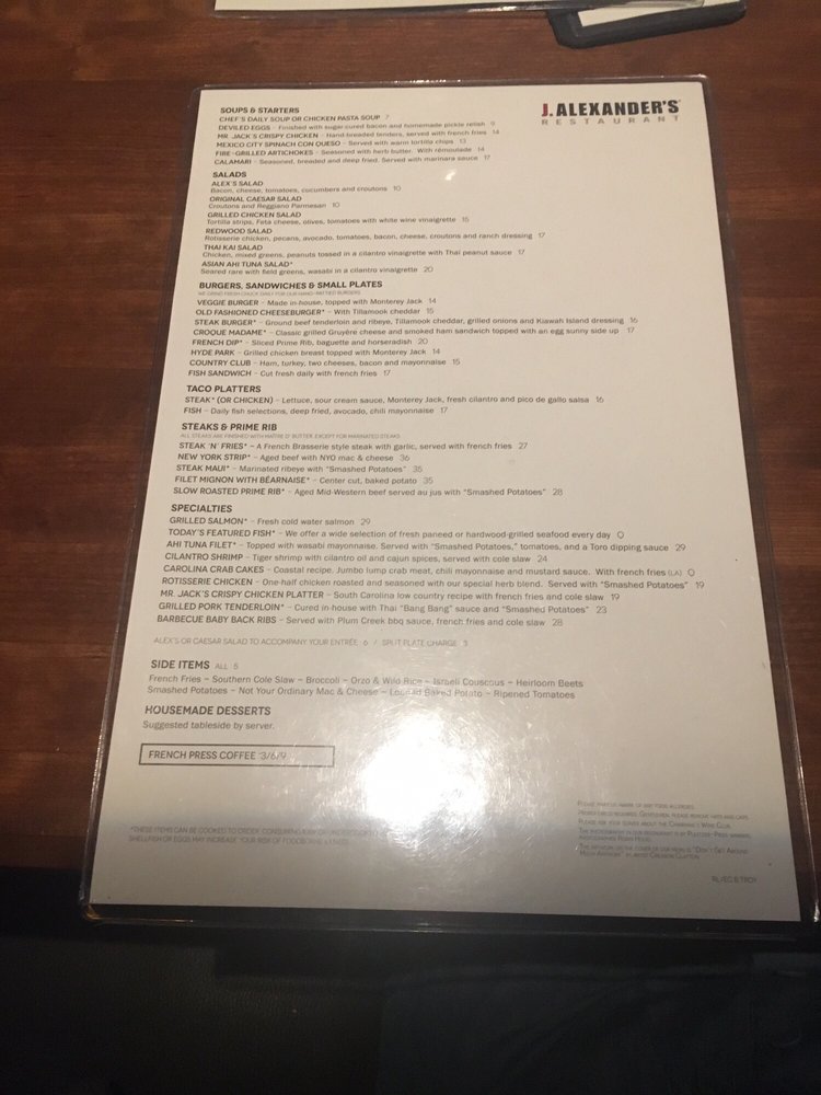 J. Alexander's Restaurant Troy Menu (Update 2025)
